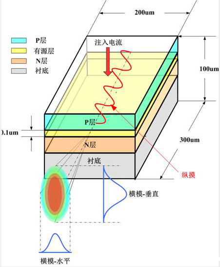 横模-水平:平行于有源层方向的模式;横模-垂直:垂直于有源层方向的模式;纵模:沿激光器输出方向的驻波模式;横模以TEMmn表征,m、n为为横模指数。